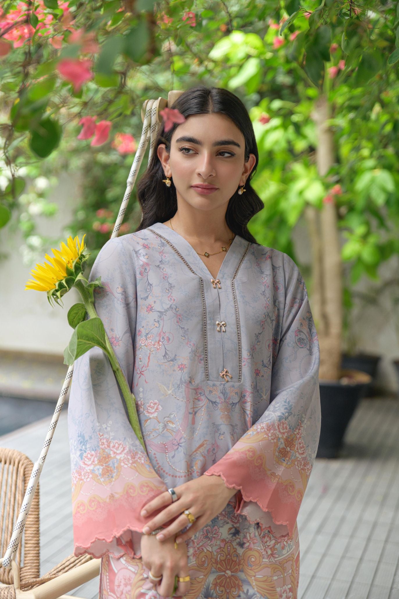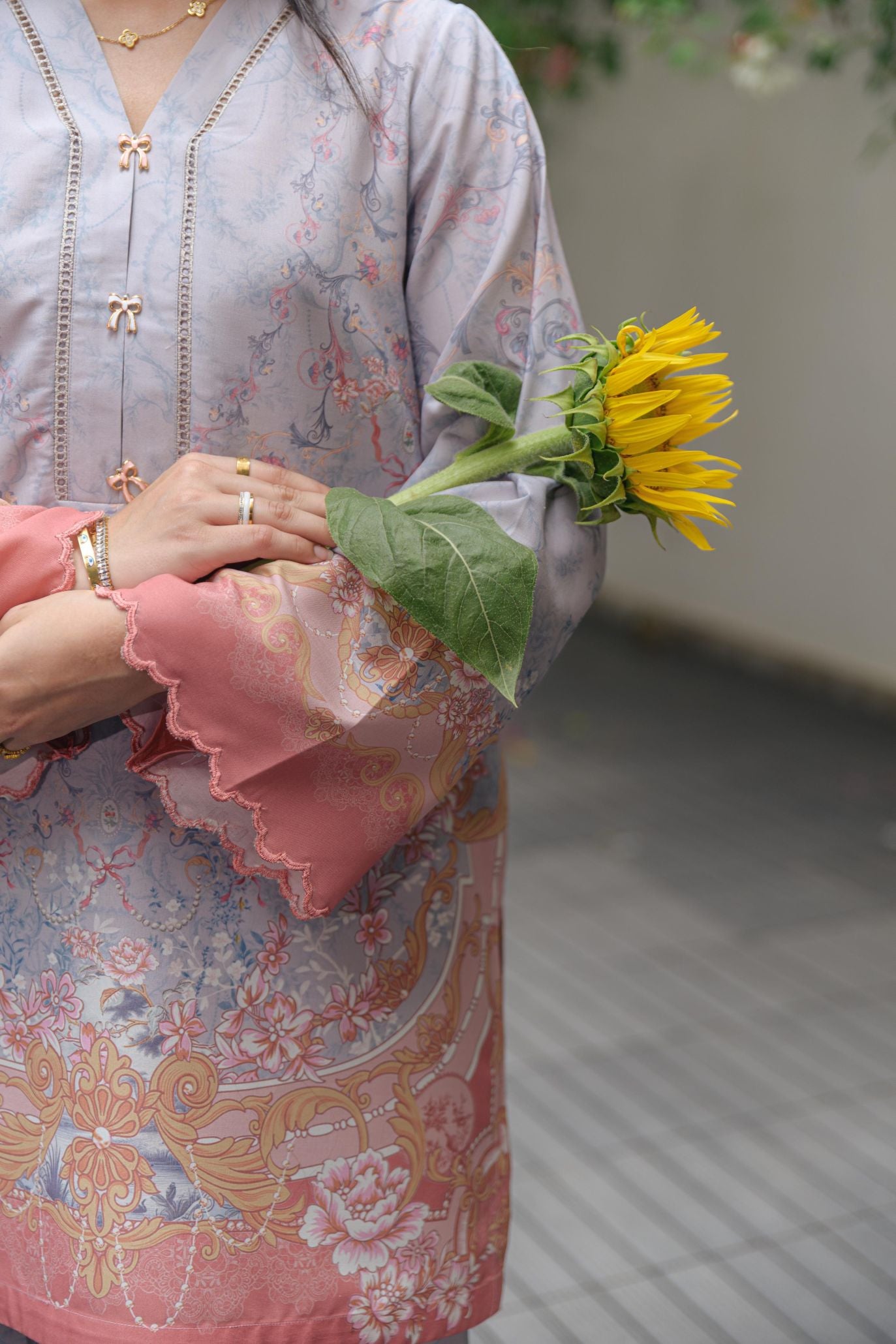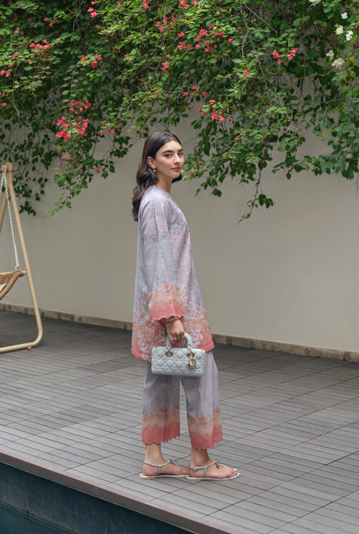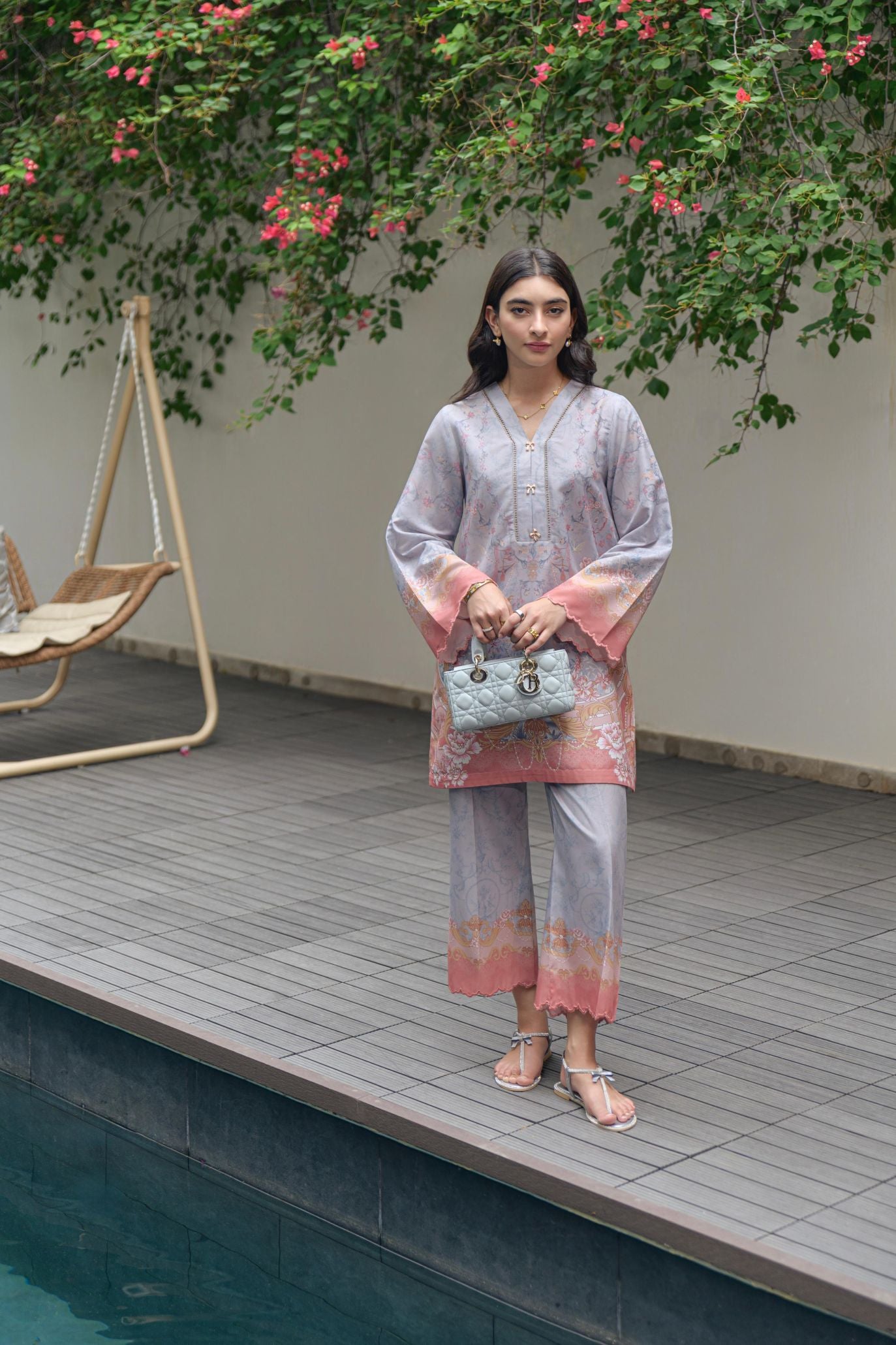 printed co-ord set - embroidery and charms details